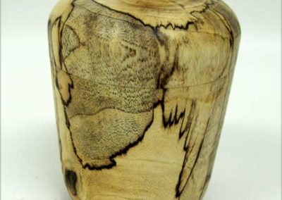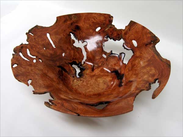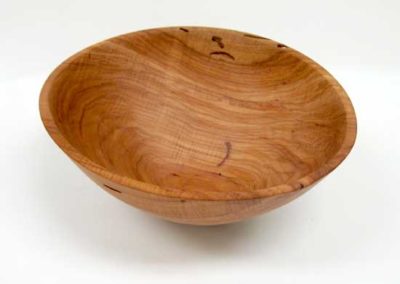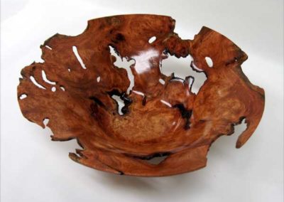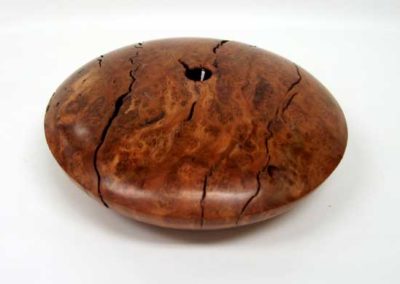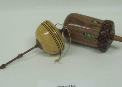 Demonstrator Joel Haby kind of blew my mind with his great mesquite burl “bowl”. He must have turned several pounds of air on that one. Jerry DeGroot showed us an “acorn” box of mesquite and a colorful Christmas ornament. James Johnson brought a very nice cherry burl hollow form with lots of natural cracks. I don’t see how he and Joel kept both pieces together.