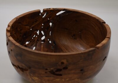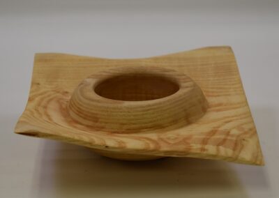 Members displayed five nice pieces at the July meeting. Tim Lutman showed a nice winged bowl from Ash, Joe Johnson showed his 3-D printed vacuum Chuck, and Randy Larson showed us 3 very niece works done in Pecan.